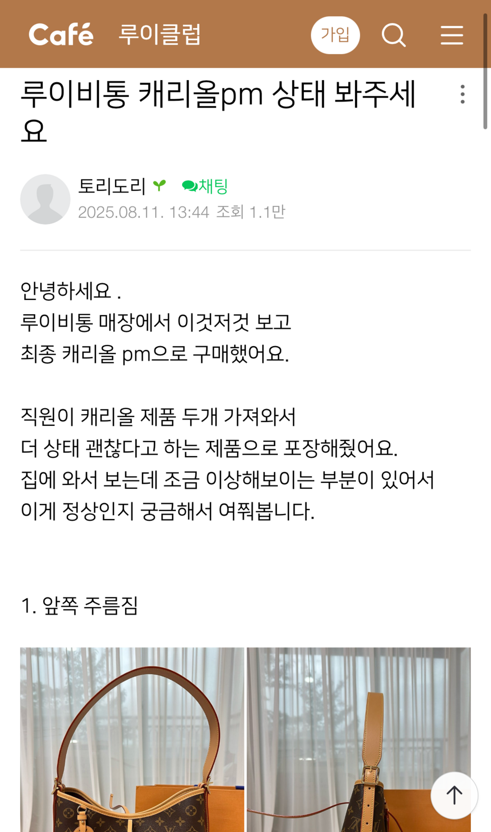 루이비통 캔버스 소재 악취 이슈(다양한 리뷰들)