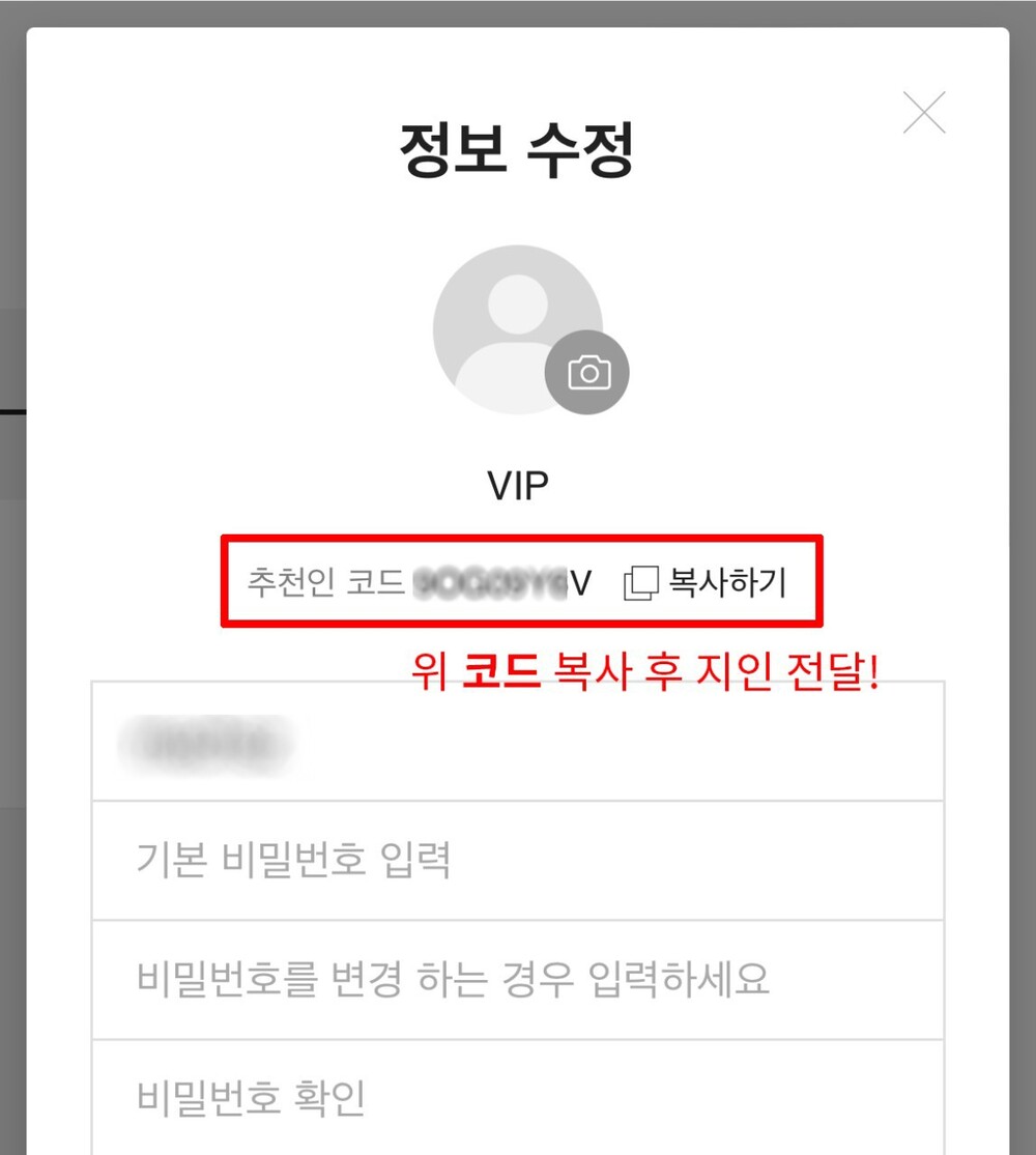 3. 영어/숫자 복사하기 클릭하여, 지인 전달.